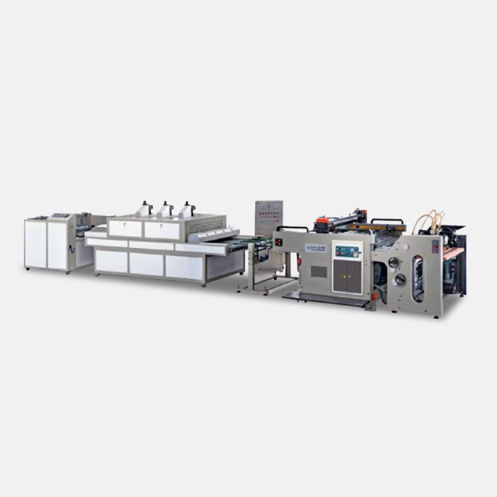 เป็นเครื่องเชื่อมการทำงาน 3 ขั้นตอน 3 ระบบ ได้แก่ ระบบซิลสกรีนแบบกระบอกสวิงอัตโนมัติ ระบบอบแห้ง และระบบจัดเรียง จัดเก็บกระดาษอัตโนมัติไว้ในเครื่องเดียวกัน ทำงานด้วยระบบนิวเมติกส์ทุกขั้นตอน ควบคุมการทำงานด้วยโปรแกรมระบบ PLC ปรับแต่งตั้งค่าเพิ่มเติมได้ สามารถรองรับการใช้หมึกพิมพ์ UV ชนิดพิเศษ เช่น สีทอง สีเงิน รองรับระบบการพิมพ์งานแบบพิเศษด้วยหมึกยูวี เช่น ฟรอสติ้ง สะท้อนแสง และคริสตัล